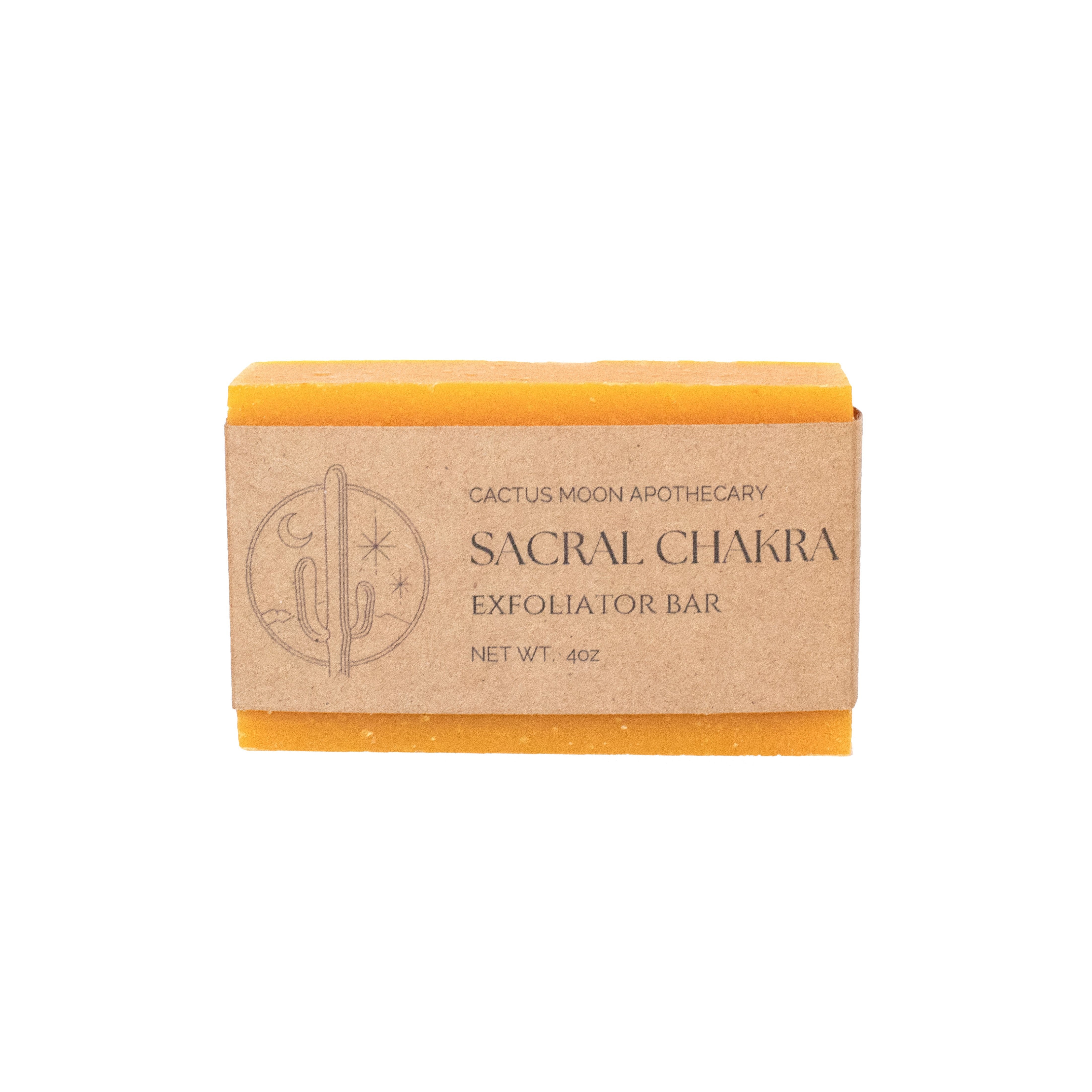 Elevate your passion, joy and creativity with our Sacral Chakra Exfoliator Bar. The Sacral Chakra is your pleasure center, guiding emotional energy through your body and into your conscious mind. Formulated with uplifting essential oils, our Sacral Chakra Candle moves stagnant energy so you can experience your most creative, joyful life.