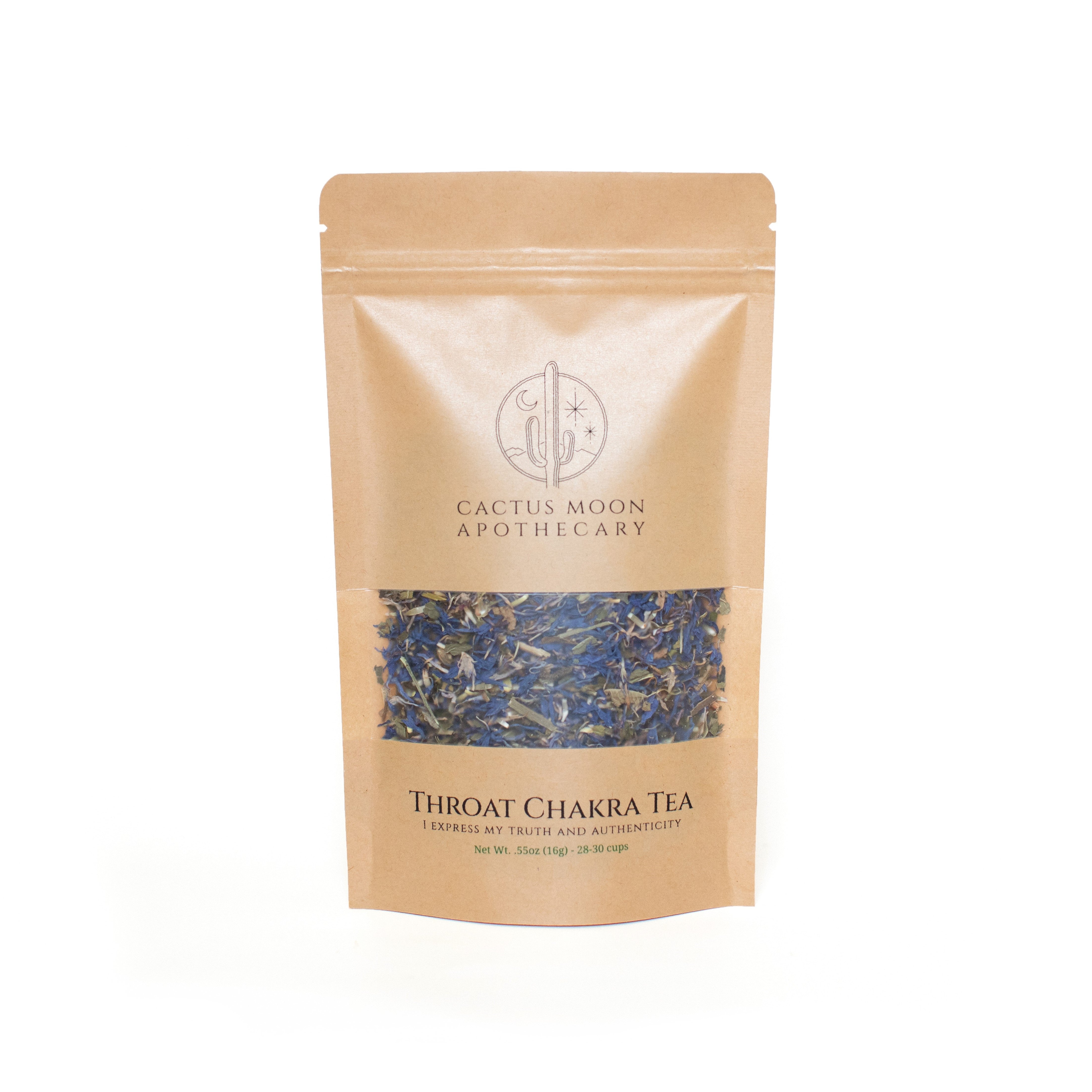 Speak your truth with our Throat Chakra Tea. The Throat Chakra rules communication and self-expression, and expressing your authenticity helps you manifest your most abundant reality. Blended with vital nervines, our Throat Chakra Tea empowers you to manifest and speak your truth with clarity and confidence.